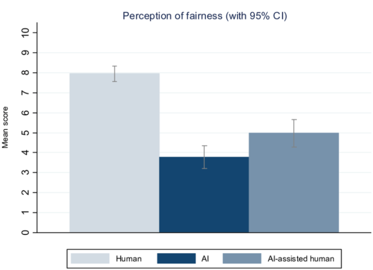 - cette acceptabilité monte à 50 % lorsque l’humain assiste l’IA ;